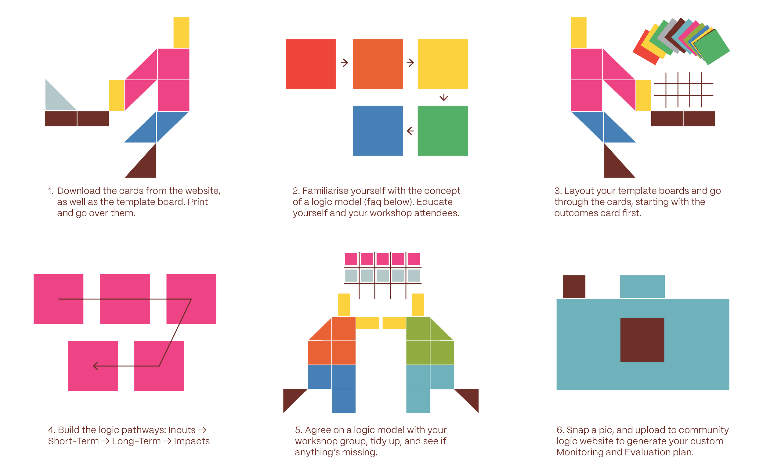 Community Logic makes the planning and evaluation process simple, visual, and collaborative. Instead of relying on technical reports or expert-only tools, it uses colour-coded cards and a shared board to help people co-design their logic model together. Each step from choosing outcomes to selecting metric is accessible and flexible, so communities can shape the project based on their lived experience. The QR system then turns the final board into a ready-made monitoring plan, ensuring that insights are captured and used throughout the project.